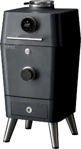 Een van de innovaties van de Everdure 4K is het Fast Flame Ignition System. Met een klik op het touchscreen scherm wordt de elektrische ontsteking van de barbecue geactiveerd. Dankzij deze ontsteking is de houtskool binnen 7-10 minuten op temperatuur en kan het barbecueën beginnen. De 4K is een houtskoolbarbecue met elektrische ontsteking en is dus geen elektrische barbecue.